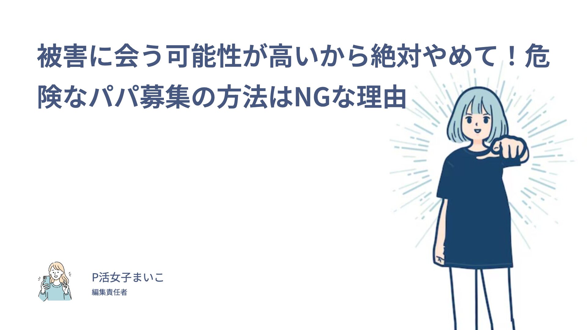 ラウンジやキャバクラみたいに、スタッフさんがいるバイトとは違ってパパ活は個人同士の付き合いだから間に入って守ってくれる人はいません!
