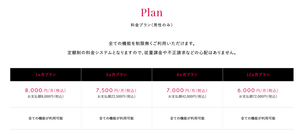 料金男性=8000円(契約期間で割引あり)